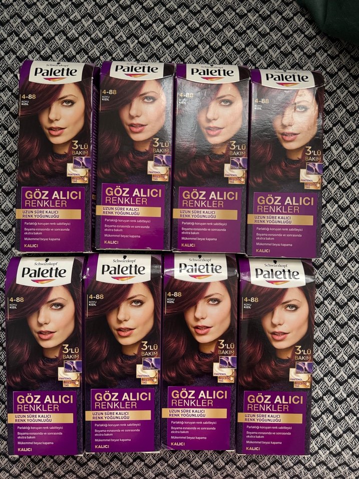 Palette saç boyası, 3 kat bakım ile kalıcı ve göz alıcı renk sunar. 4-88 koyu kızıl tonu, zengin kaplama ve parlaklık sağlar. Saçınızı korur ve canlandırır. Hepsini alana şarap kızılı hediye son fiyat