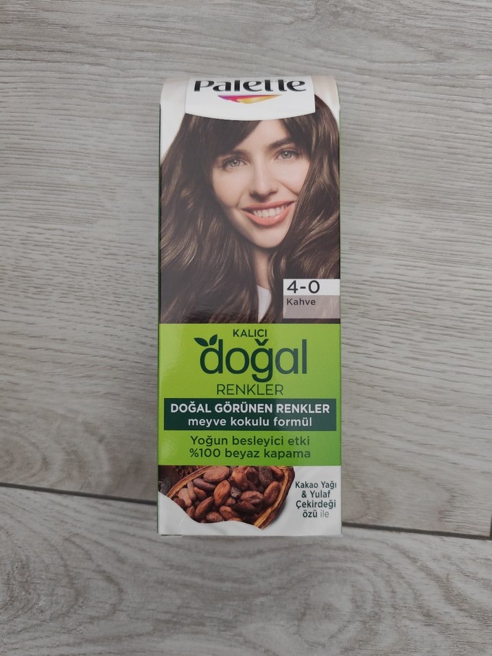 Palette kalıcı kahve saç boyası 4-0, %100 beyaz kapama sağlar. Meyve kokulu formül, kakao yağı ve yulaf çekirdeği özü ile yoğun besleyicidir.