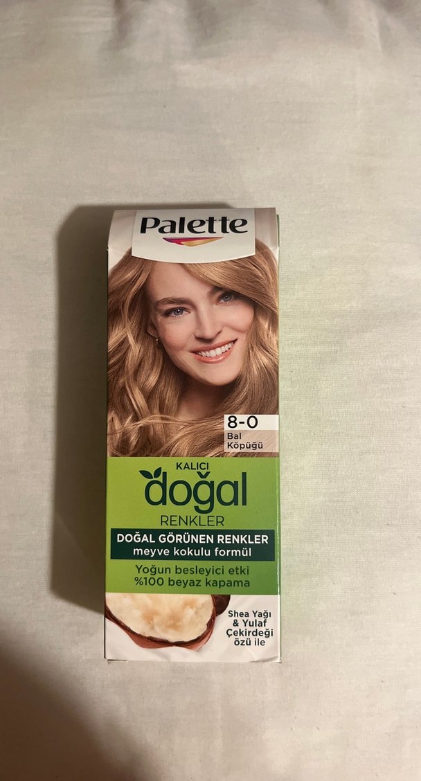 Palette kalıcı saç boyası 8-0 Bal Köpüğü, 0 beyaz kapama sağlar. Meyve kokulu formülü, shea yağı ve yulaf çekirdeği özü ile yoğun besleyici etki sunar.