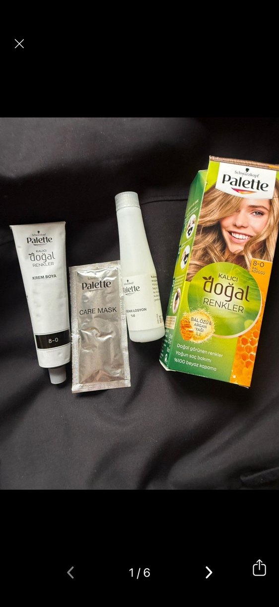 Palette kalıcı saç boyası, doğal renkler ve bal özü ile canlı, uzun süre kalıcı sonuçlar sunar. İçinde bakım maskesi ve losyon bulunur.