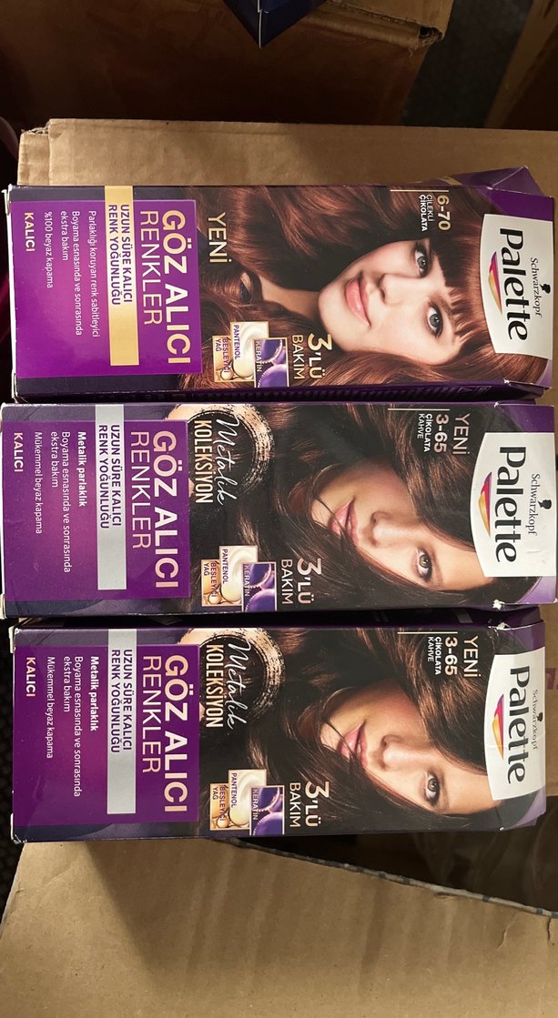 Palette kalıcı saç boyası, 3'lü bakım formülüyle göz alıcı renkler ve beyaz kapama sağlar. 3-65, 3-65 ve 6-70 renk seçenekleri mevcuttur.