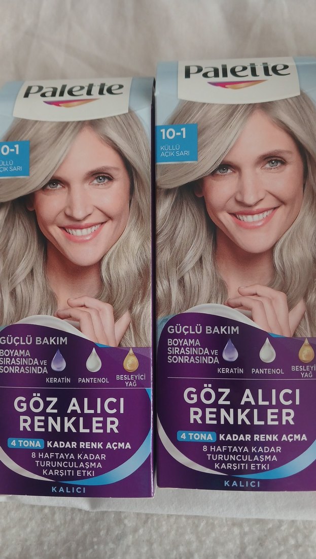 Palette 10-1 küllü açık sarı saç boyası 4 tona kadar renk açma sağlar. Keratin, panthenol ve besleyici yağ içerir. Boyama sırasında ve sonrasında güçlü bakım yapar, turunculaşmaya karşı korur, 8 haftaya kadar kalıcıdır.