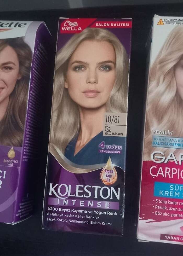 Palette ve garnier 3 adet saç boyası sarı ve kumral renklerde