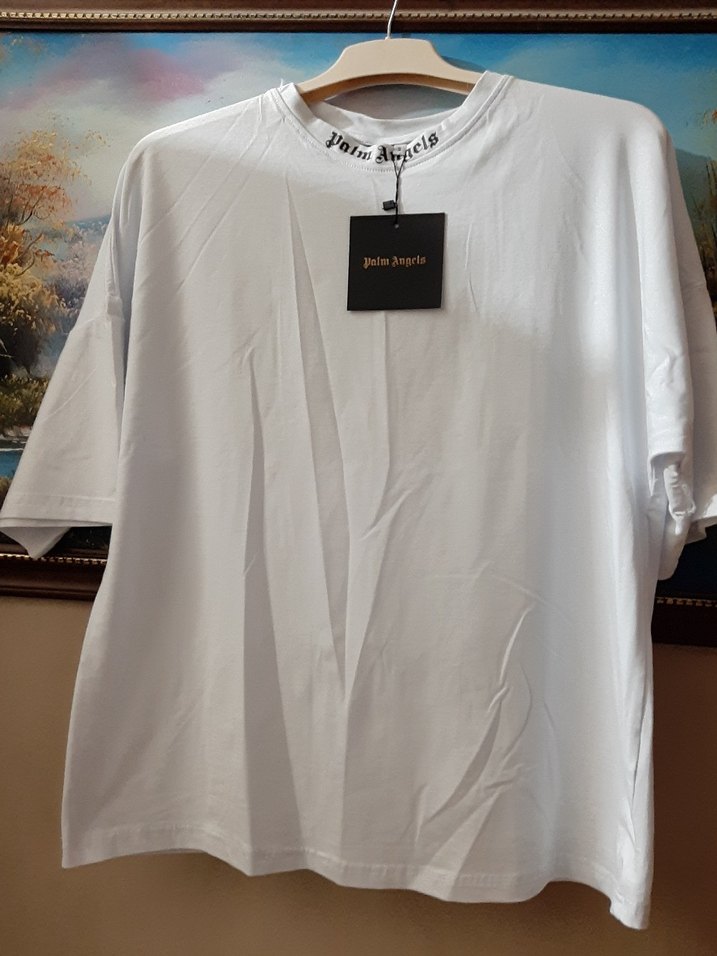 Pamuk kumaştan üretilmiş, kısa kollu ve yuvarlak yakalı beyaz Palm Angels tişört, rahat oversize kesimiyle günlük kullanım için uygundur.