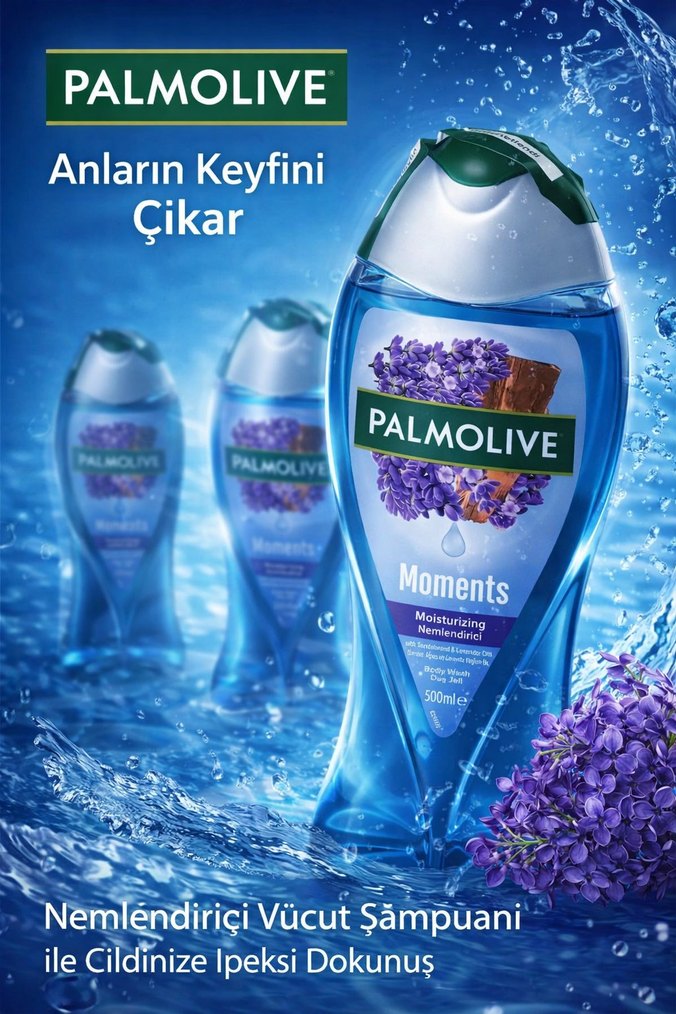 Palmolive Moments nemlendirici vücut şampuanı, cildinize ipeksi bir dokunuş sunar. 500 ml'lik şişede ferahlatıcı lavanta kokusu bulunur.
