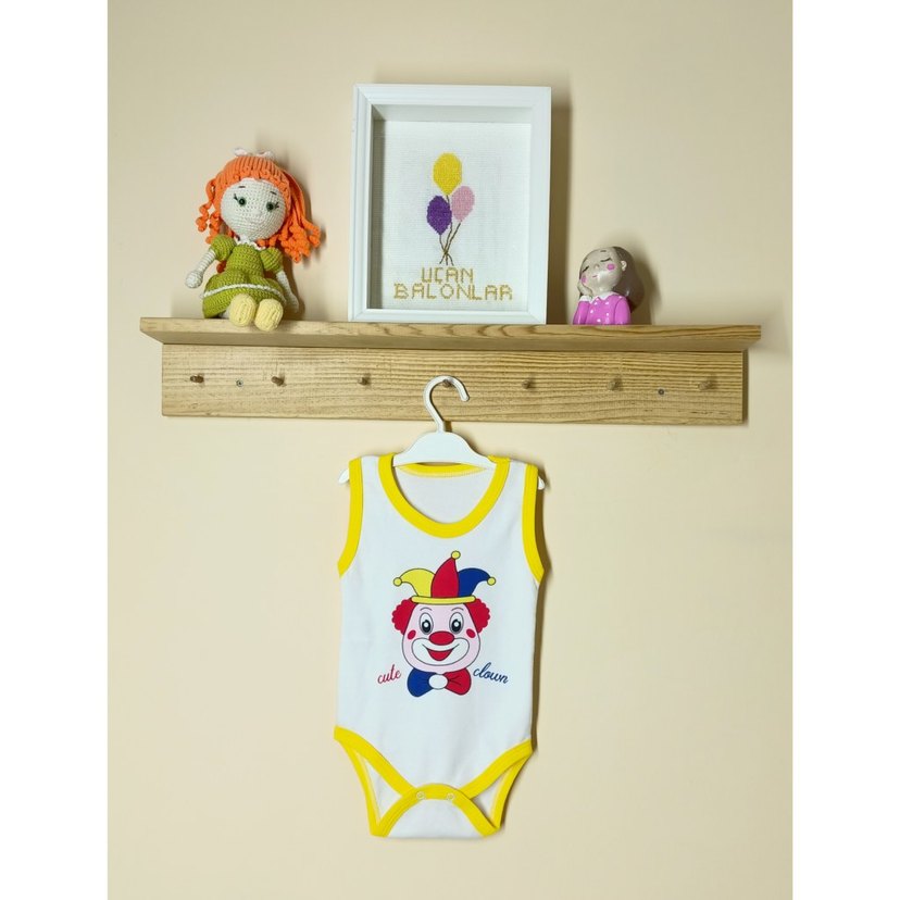 Palyaço Baskılı Kolsuz Bebek Çıtçıtlı Badi