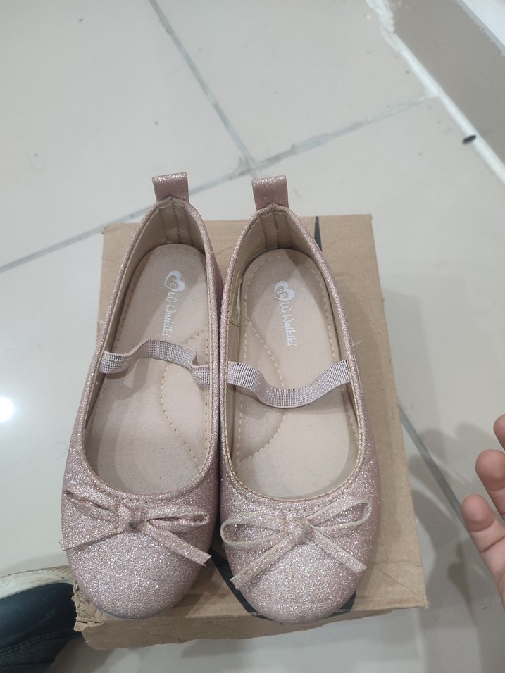 pembe renkli, tokalı bantlı kız çocuk babetleri, yumuşak on kısmındaki deformeyi çektim ama ayağa giyildiginde belli olmuyor iç kısımlarda hiçbir sorun yoktur