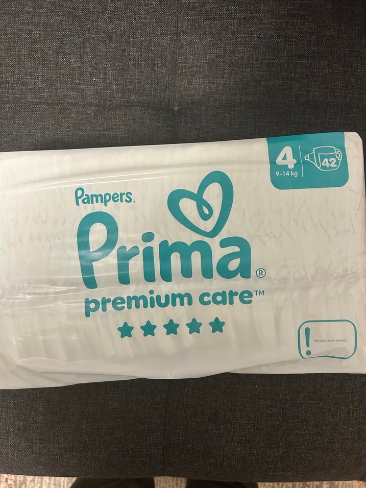 Pampers Prima Premium Care bebek bezleri, 9-14 kg bebekler için yumuşak ve güvenli koruma sağlar. Paket 42 adet bez içerir, konfor ve kuru kalma sağlar.