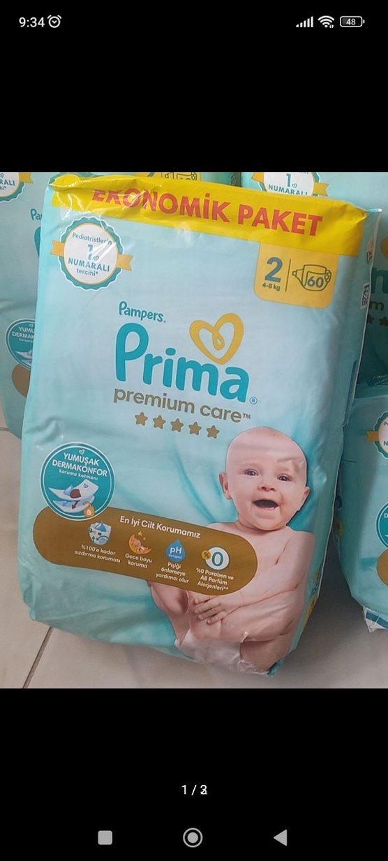 Pampers Prima Premium Care Bebek Bezi No:2, 60 Adet