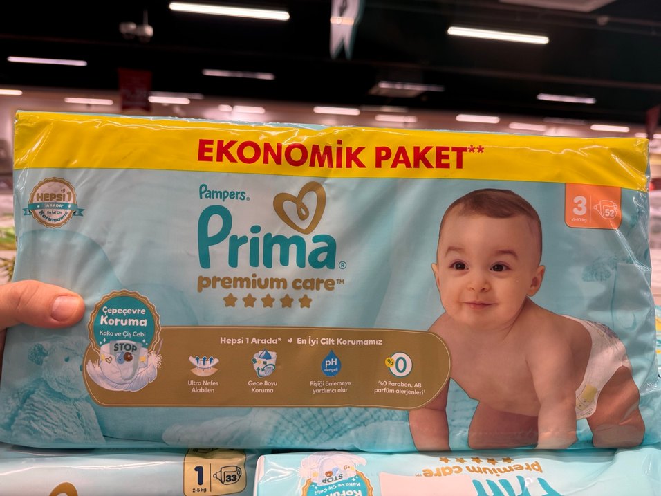 Pampers Prima Premium Care erkek bebek bezleri, ultra nefes alabilen katmanlar, gece boyu koruma ve pH dengesi ile pişik önlemeye yardımcı olur. Ekonomik paket, 52 adet içerir.