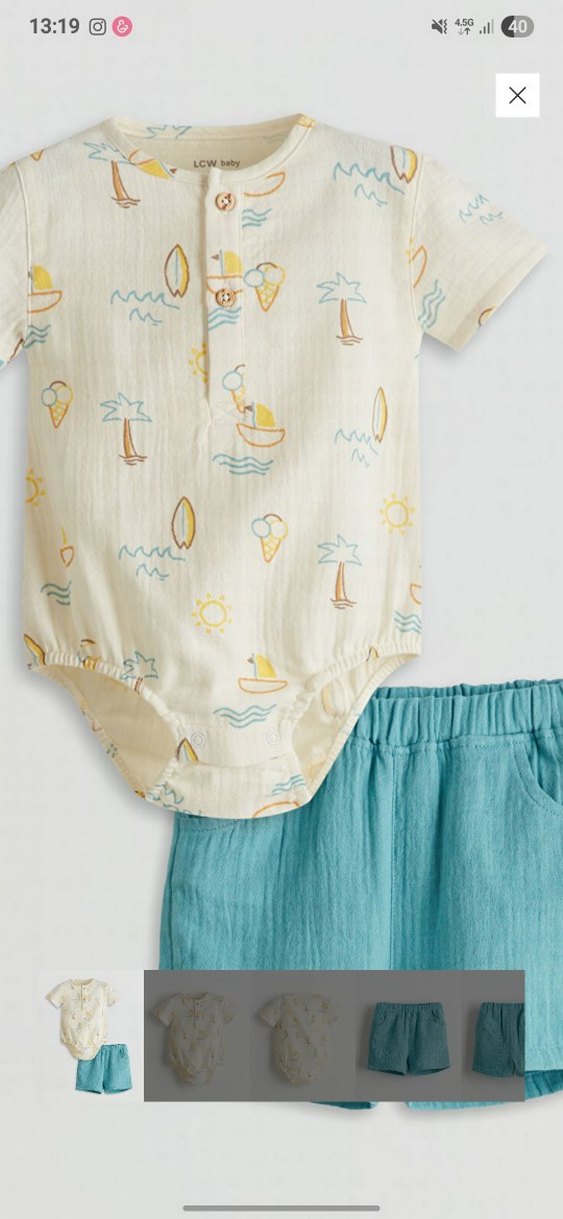 Pamuk kumaştan, düğmeli kısa kollu, yuvarlak yaka ve pastel baskılı bohem tarzda üst ile rahat mavi alt takım. Şortunu 2 kez giydirdim zibin giyilmedi