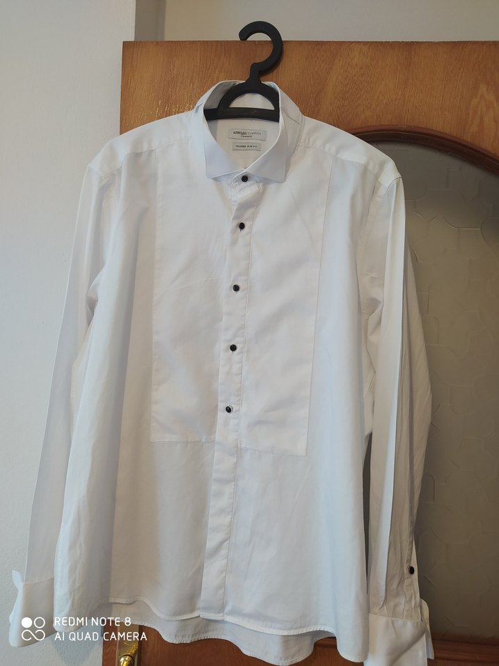 Pamuk kumaştan yapılmış, düğmeli, beyaz renkli erkek gömlek. Uzun kollu, regular fit ve klasik tarzda, ofis ve sokak modasına uygun.