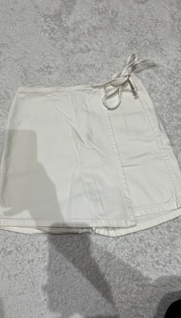 Pamuklu kumaştan üretilmiş, beyaz midi etek. Rahat kesimi ve yan bağlama detayıyla günlük sokak stiline uygundur.