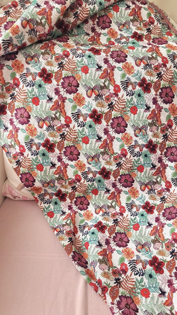 Saf pamuklu brokar kumaş.Beyaz zeminli olan.Kalın ve çok yumuşak bir brokar.Hafif esnek.KışIık veya mevsimlik ceket, etek ,kap vb. dikilebilir. Ayrıca kırlent, koltuk örtüsü, ev tekstili de olur. Eni 140 cm , boyu 100 cm. (Bașka metrajda da ilan açabilirim)