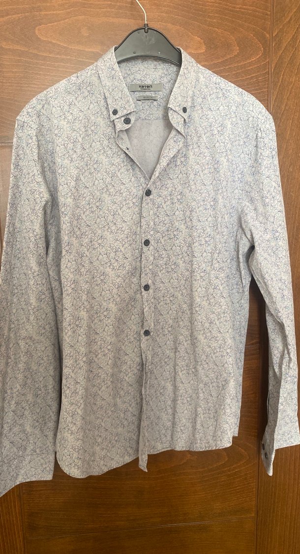 Pamuk kumaştan, gri renkte, düğmeli ve yakalı erkek gömleği. Uzun kollu ve regular fit, ofis ve günlük sokak tarzı için uygundur.