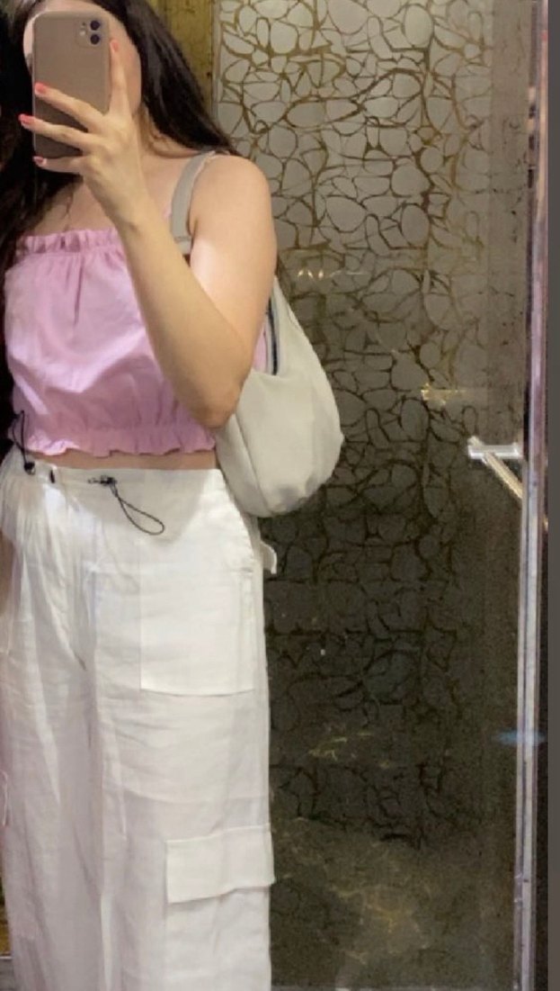 Pamuk kumaştan yapılmış, bol kesim ve midi boyda pembe pantolon. Günlük kullanım için rahat ve şık, desensiz sade tasarıma sahip.