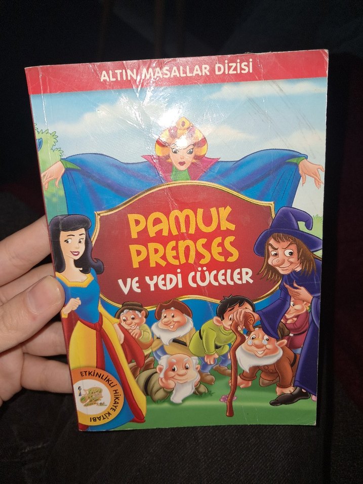 Altın Masallar dizisinden 'Pamuk Prenses ve Yedi Cüceler' adlı çocuk kitabı, klasik masalı anlatır. sadece kitabın kapak kısmında yazılar mevcuttu onlarıda dakstil yardımıyla sildim.