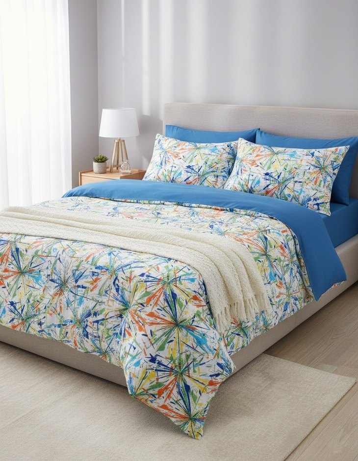 Pamuk Renkli Soyut Desenli Nevresim Takımı