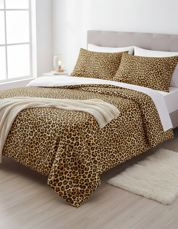 Kahverengi leopar desenli nevresim, lastikli çarşaf ve yastık kılıfları, yumuşak ve rahat kumaştan üretilmiştir. ️Ölçüleri Nevresim: 200x220 Lastikli Çarşaf:160x200 Yastık Kılıfı :50x70 (2 adet)