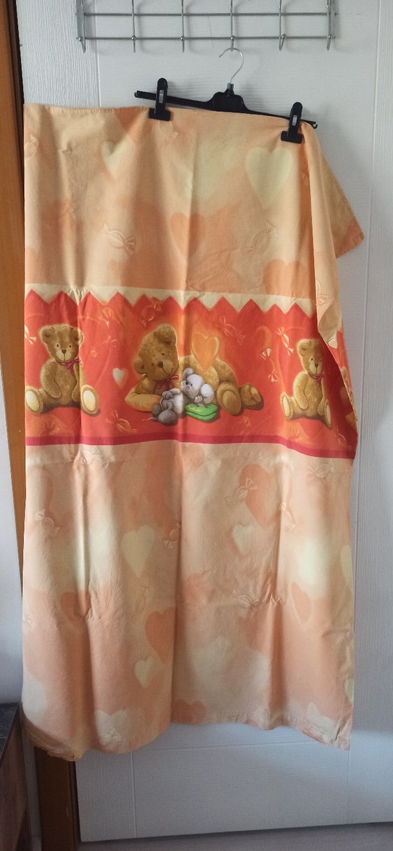 Pastel camel renginde, ayıcık ve kalp desenli baskılı bebek nevresim. Yumuşak pamuklu kumaştan yapılmıştır, 1-2 DEFA KULLANILDI TEMİZ VE SAĞLAMDIR STANDART BEBEK NEVRESİM EBATİNDADİR