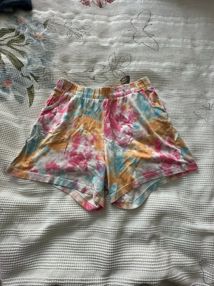 Yumuşak pamuktan, bol kesim, pastel bağlamalı desenli ve fırfırlı mini şort, günlük sokak stili için uygundur.