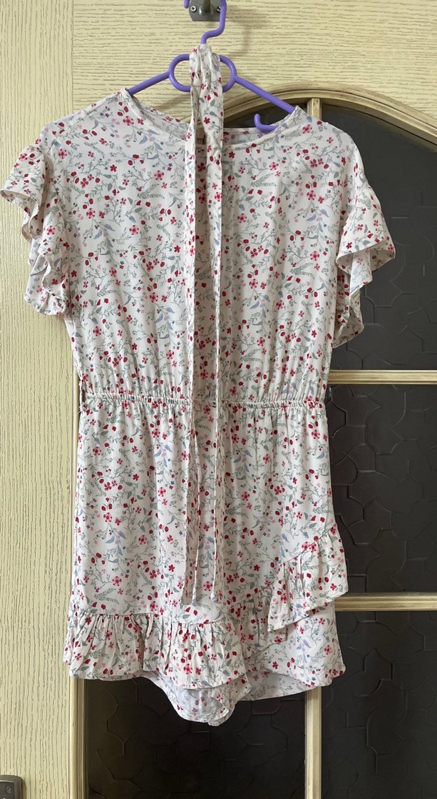 Pamuklu, beyaz renkli midi tulum, bol kesim, kısa kollu ve fırfır detaylıdır. V yaka ve pastel çiçek desenine sahiptir, bohem tarz sunar. İpi bele bağlanır 10 11 yaş