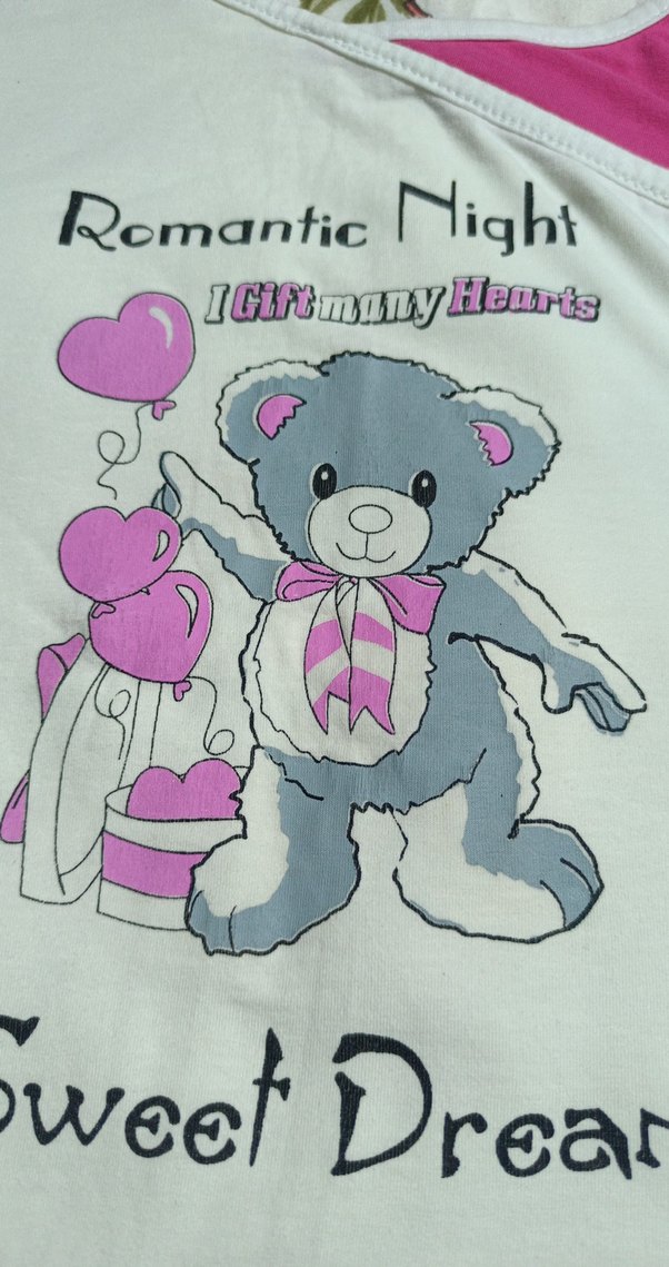 Pamuklu, baskılı, kısa kesim ve kolsuz, yuvarlak yakalı sıkı oturan beyaz tişört. Ayıcık ve romantik desenli, rahat bir model.