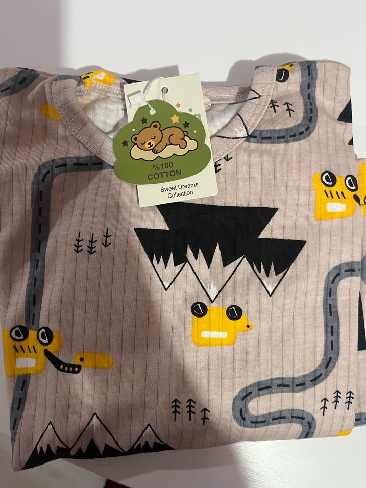 %100 pamuklu, gri ve kahverengi tonlarında çocuk pijama 7-8 yaş