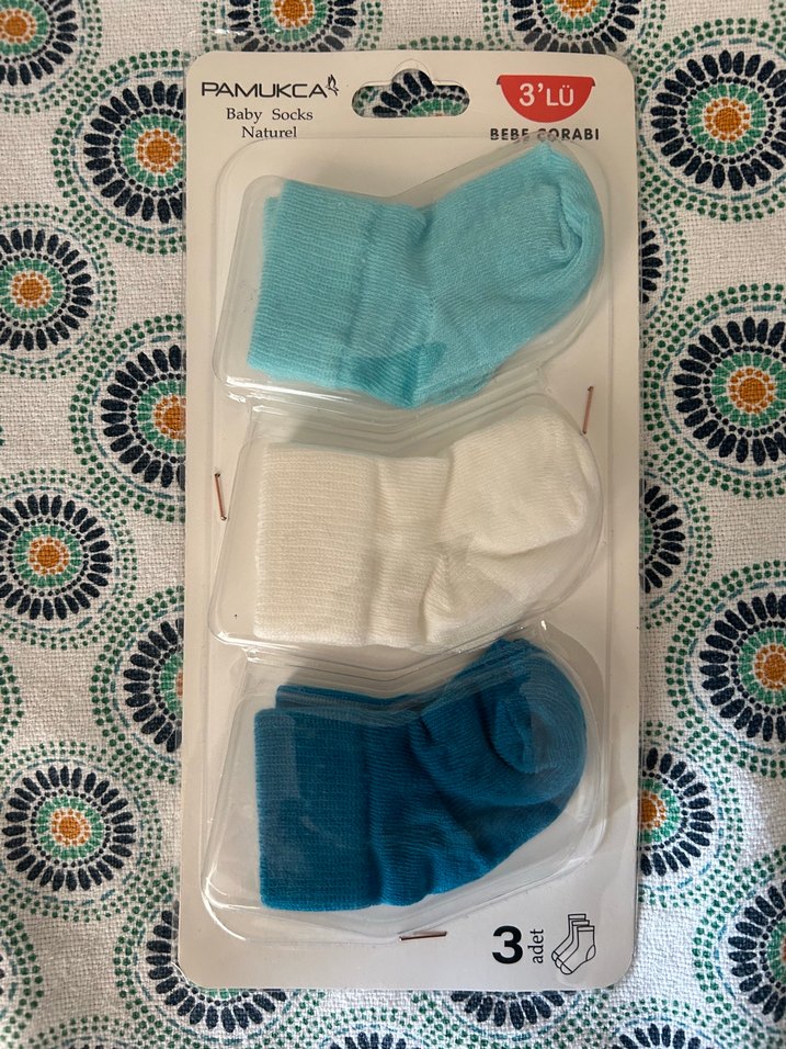 Pamuklu Bebek Çorabı 3'lü Set - Mavi Tonları