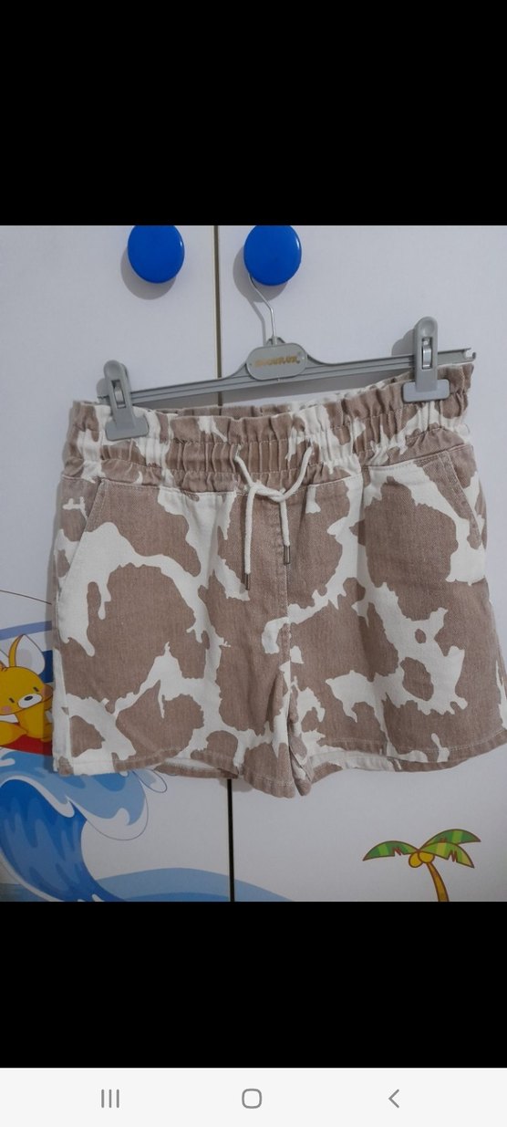 Bağlamalı beli ve bağlama ipi olan, pamuklu bej mini şort. Rahat kesim ve tie-dye desene sahip, günlük sokak stiline uygun.