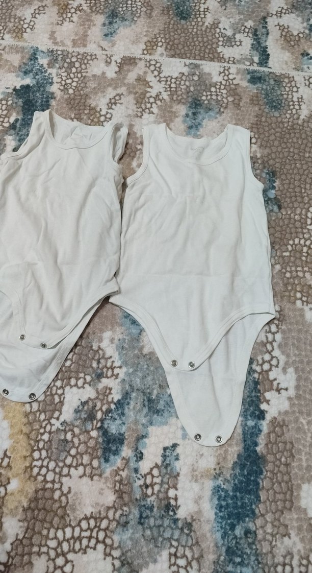 Yumuşak pamuktan yapılmış beyaz askısız bebek bodyleri, kolay giydirme için alt kısmında çıtçıt düğmeler bulunur. Basit ve rahat tasarım.