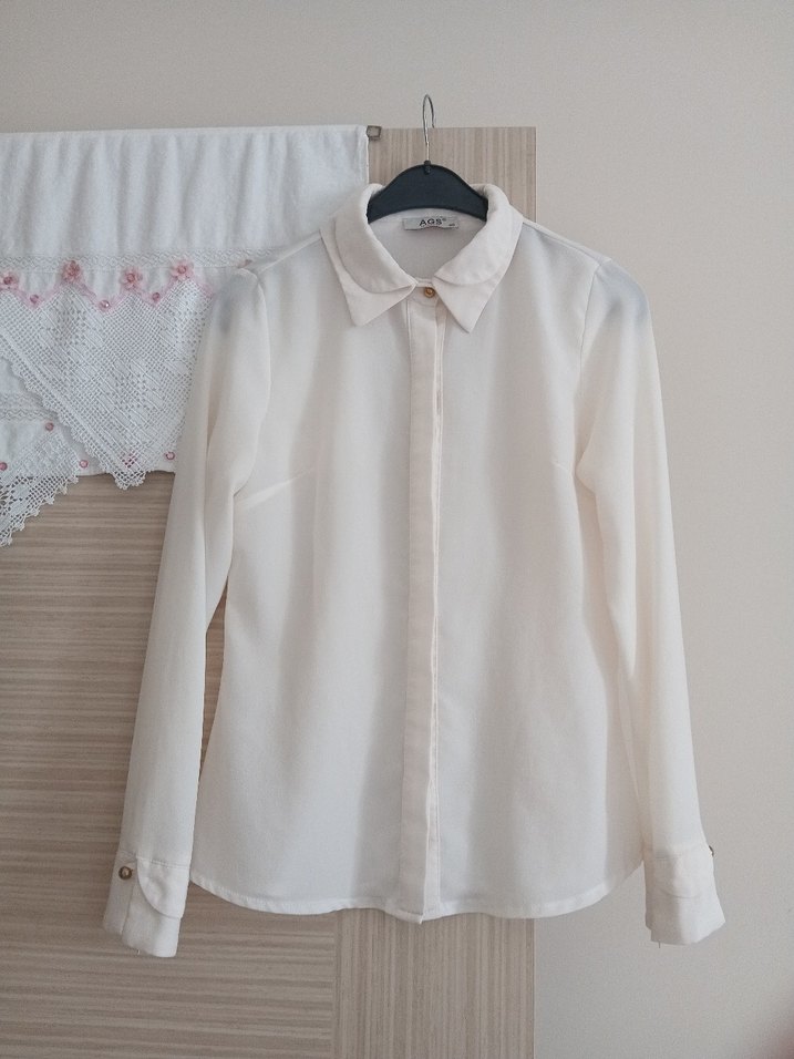 Pamuklu beyaz gömlek, düğmeli, uzun kollu ve yakalıdır. Salaş kesimi ve normal uzunluğu ile ofis için uygundur. Pastel tonlarda, desensiz şık bir tasarım sunar. yeni giyilmedi