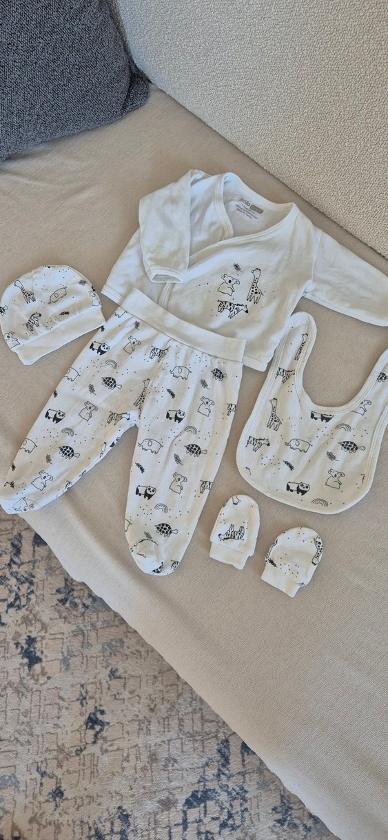 Pamuklu Beyaz Erkek Bebek 5'li Kıyafet Seti