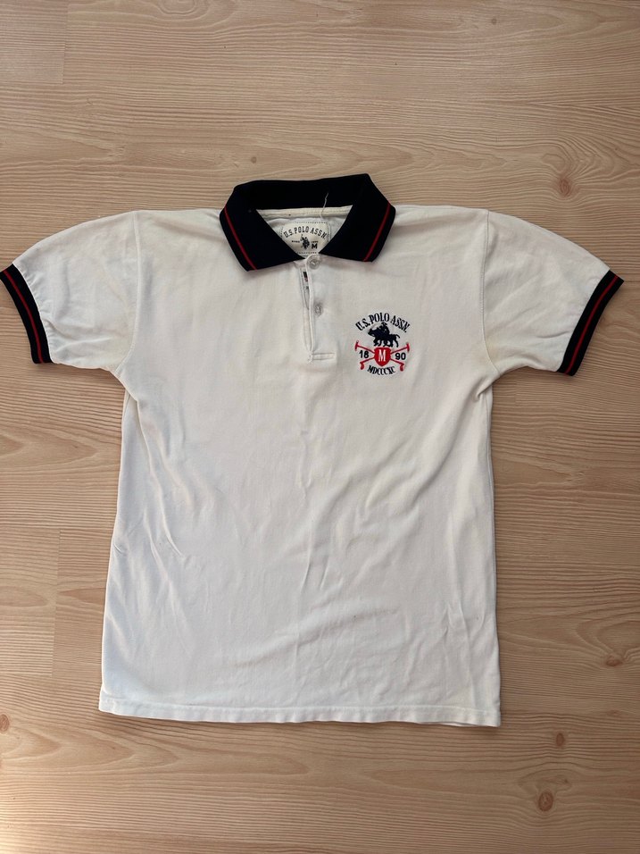 Pamuklu, kısa kollu beyaz erkek polo tişört, koyu renk yakası ve düğmeli. Baskılı detaylı, rahat kesim, günlük sokak giyimi için uygundur. Koltuk altlarında hafif lekeler var o yüzden bu fiyat