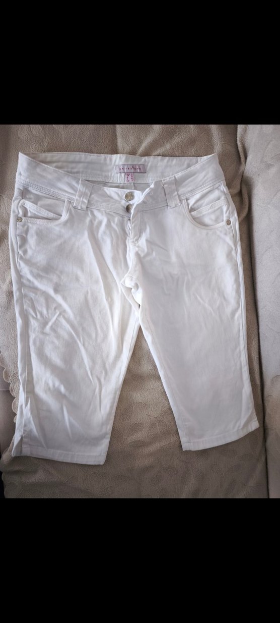 Pamuklu, beyaz kapri sade ve deseniz tasarımıyla günlük sokak stiline uygun. Rahat ve şık, günlük kullanım için ideal. düşük bel