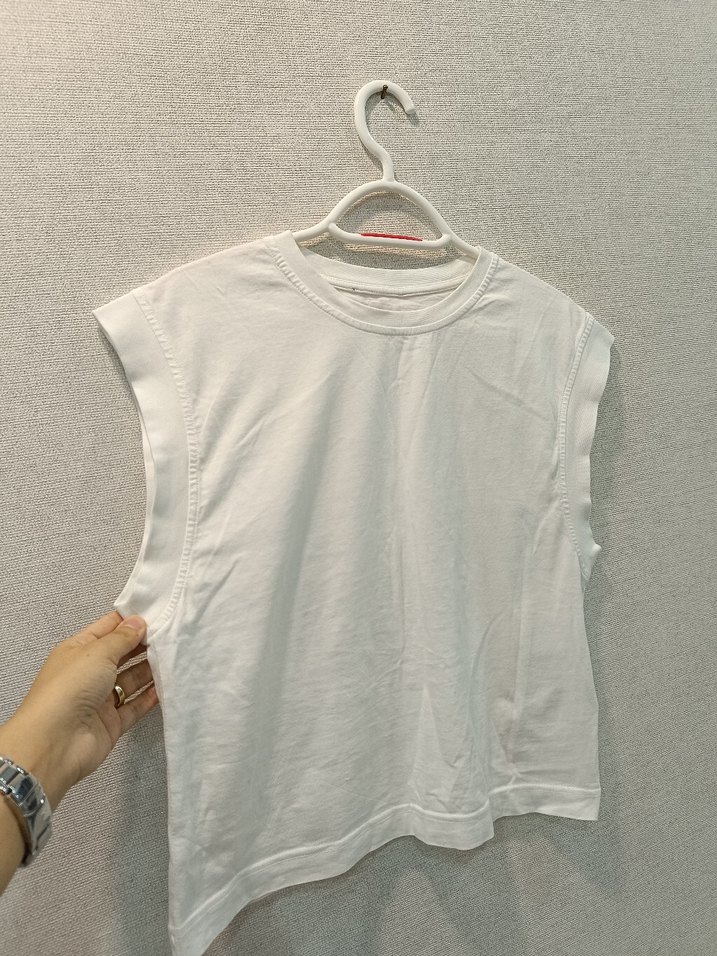 Pamuklu, kolsuz, beyaz, yuvarlak yaka kadın tişörtü. Salaş kesimi ve sade tasarımıyla günlük rahatlık sağlar. Minimalist ve pastel tonlarda.