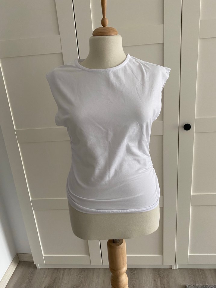 Pamuklu Beyaz Kolsuz Tişört likralı