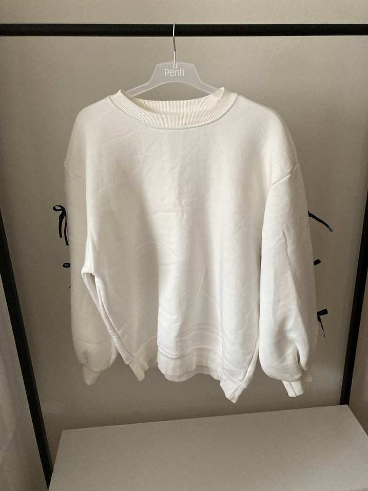 Pamuklu, uzun kollu beyaz sweatshirt, bisiklet yaka ve bol kesimiyle rahat kullanım sağlar. Günlük kullanıma uygun, zahmetsiz şıklık sunar.