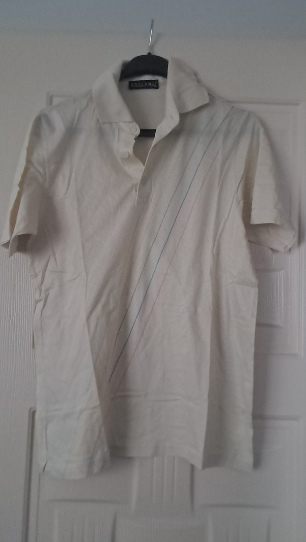 Pamuklu beyaz polo tişört, yakalı ve kısa kollu olup, rahat kesimiyle trend sokak stili sunar. İnce çapraz çizgilerle zahmetsiz şıklık sağlar.