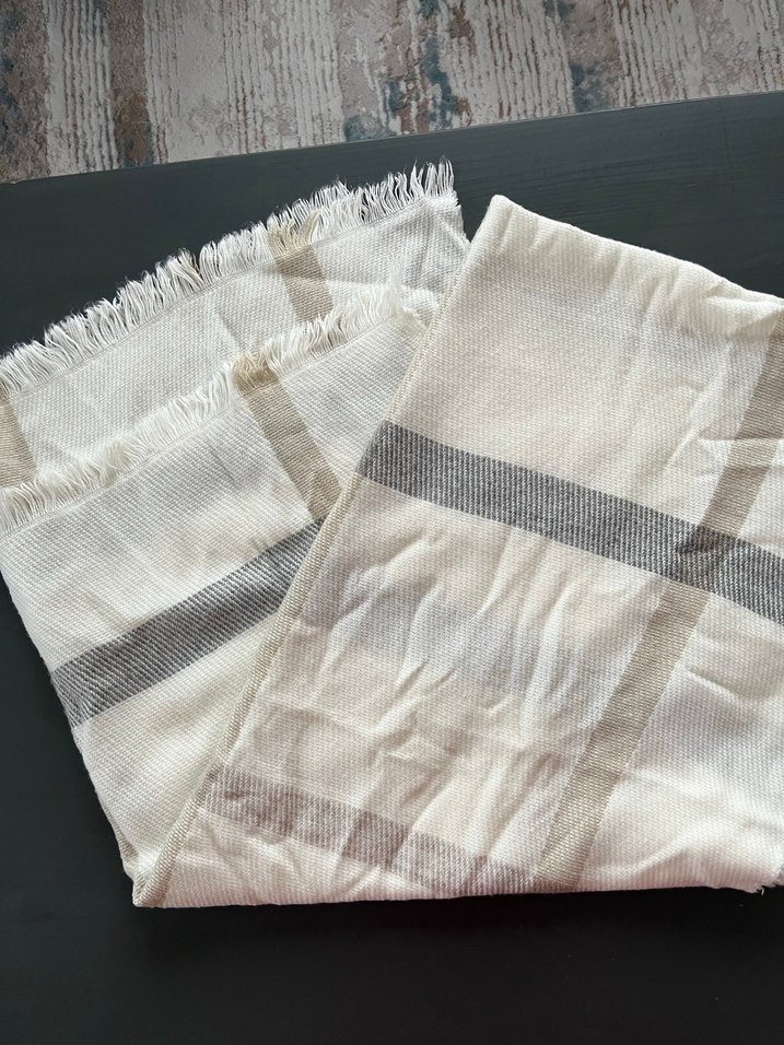 Pamuklu kumaştan, gri ve beyaz tonlarda, püsküllü kenarları ve rahat bohem tarzıyla drapeli kadın şalı. Sade ve temel bir görünüm sağlar.