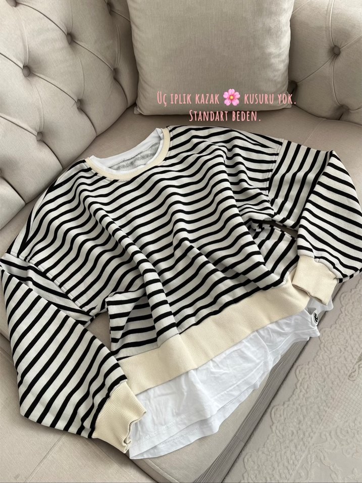Pamuklu, uzun kollu, çizgili ve fırfırlı detaylı bol kesim. Kusuru yok yumuşacık