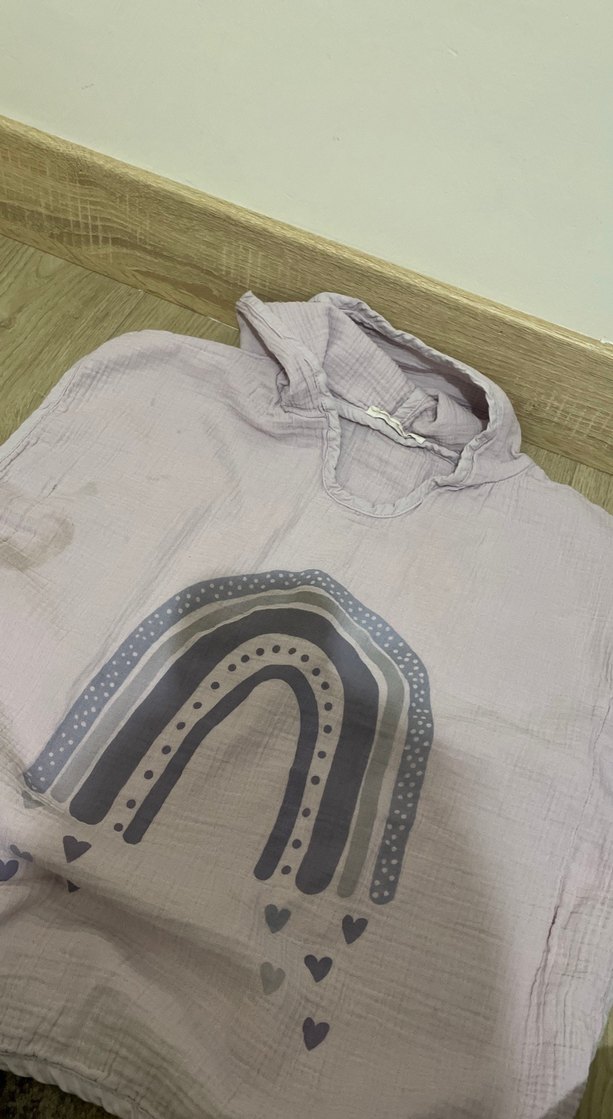 baskılı, düğmeli, uzun kollu, yuvarlak yakalı, bol kesim pamuklu çocuk bohem panço havlu fotoğrafta kusuru mevcut