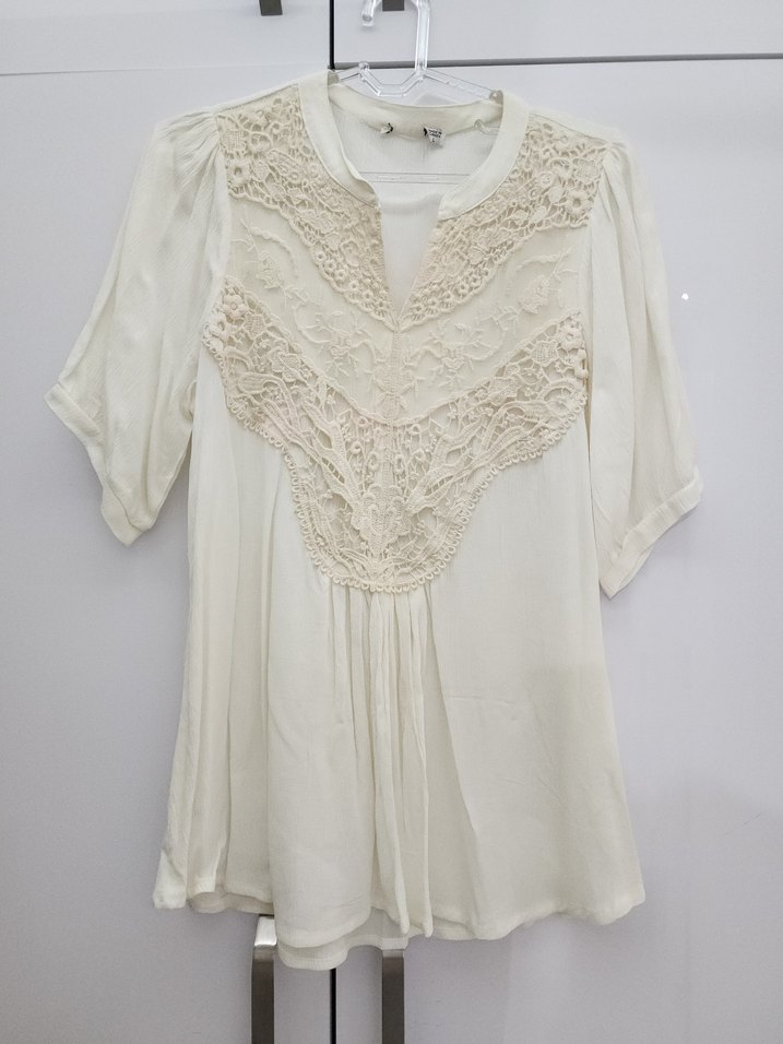 Pamuklu, kısa kollu, V yakalı kırık beyaz bluz, dantel işlemeli ve bol kesimdir. Hamile arkadaşlarım için uygundur. Günlük kullanıma uygun bohem tarzdadır.