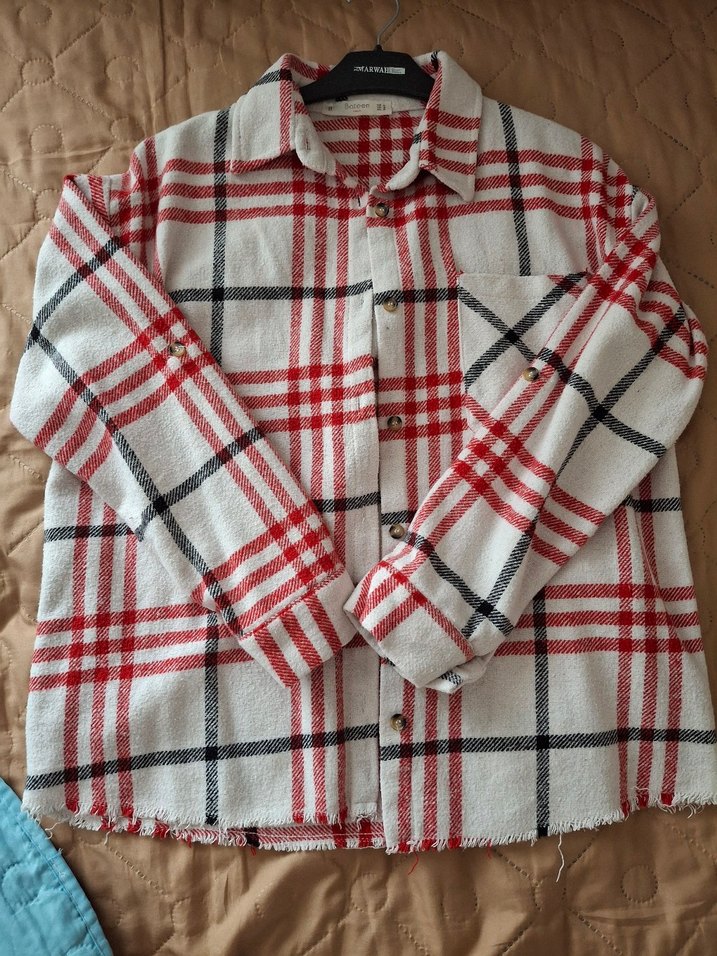 Pamuklu kumaştan üretilmiş, düğmeli, uzun kollu, notched lapel yakalı, ekose desenli, rahat kesim ve normal boyda kadın gömleği. Günlük sokak stili için uygundur.