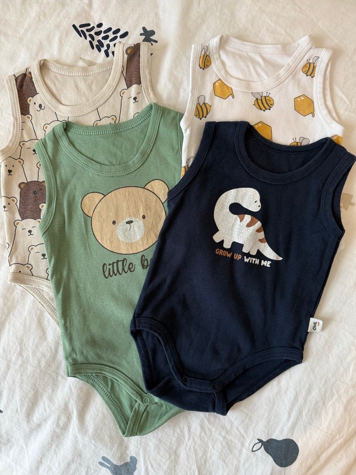Pamuklu Erkek Bebek Kolsuz Body Seti