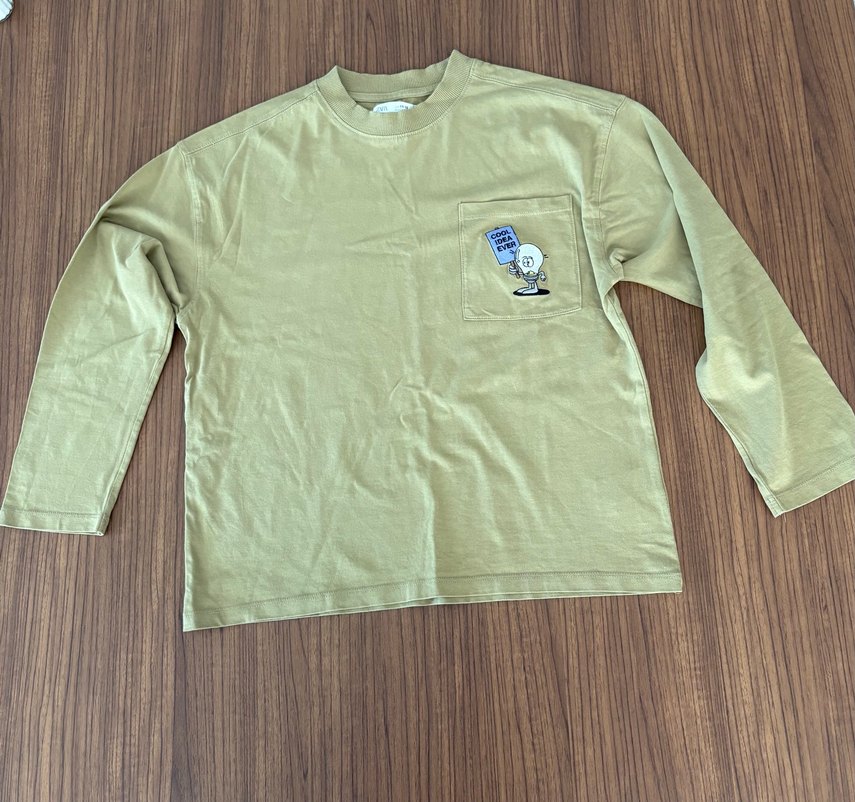 %100 pamuklu erkek çocuk tişörtü, uzun kollu, yuvarlak yaka ve cepli baskılı desene sahip.ürün sayılı kullanılmıştır, hiçbir kusuru, sorunu yoktur. #zara