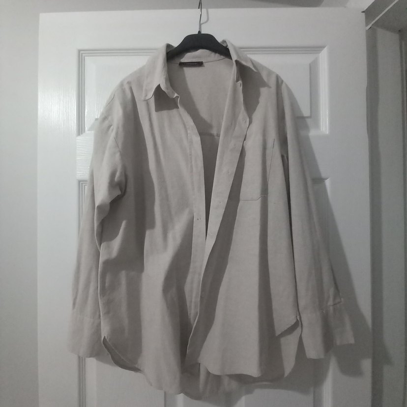 keten kumaştan, uzun kollu kadın gömlek