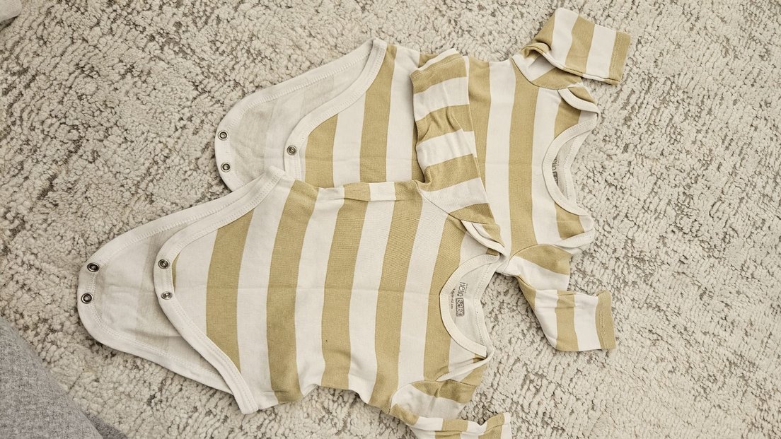 Pamuklu, kısa kollu, V yakalı ve düğmeli bebek body. Yumuşak çizgili ve bohem tarzda, rahat ve kullanışlı.