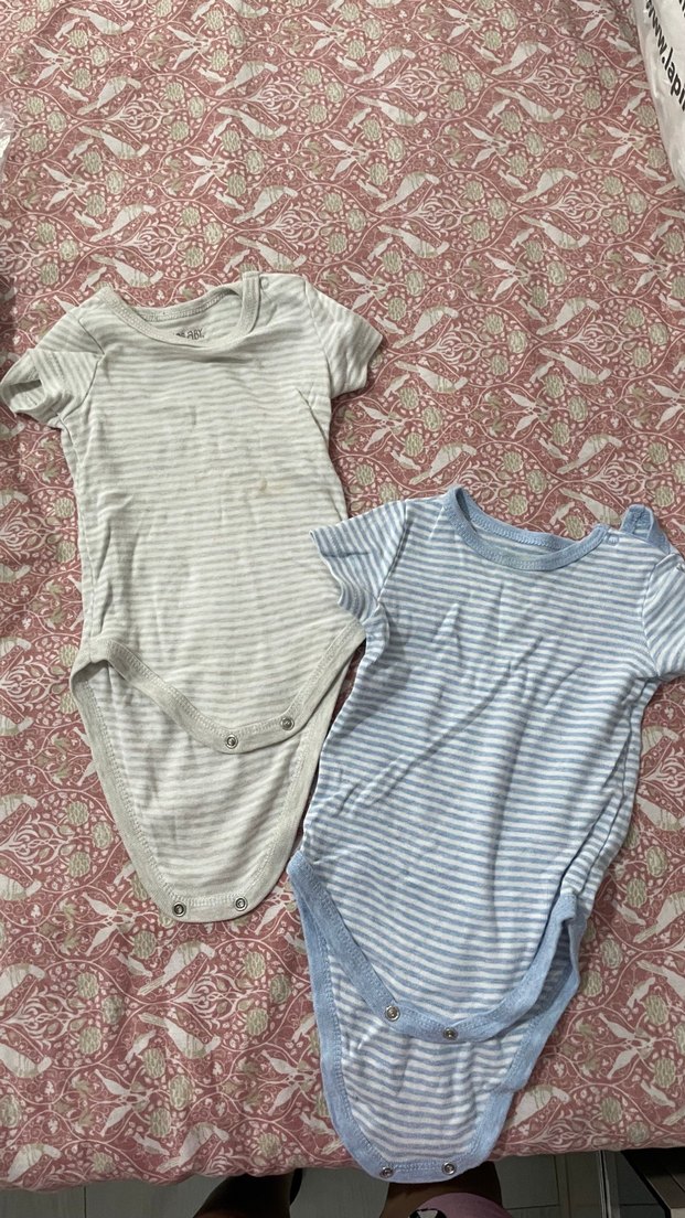 Kısa kollu, yuvarlak yakalı pamuklu bebek body. Pastel renkli 6 ay uyumlu krem renkte leke var sadece ikisi birlikte satıyorum 50 tl Birlikte