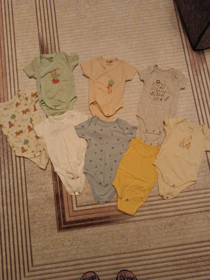 Pastel tonlarda, pamuklu, kısa kollu, bisiklet yaka ve normcore tarzda bebek bodyleri.